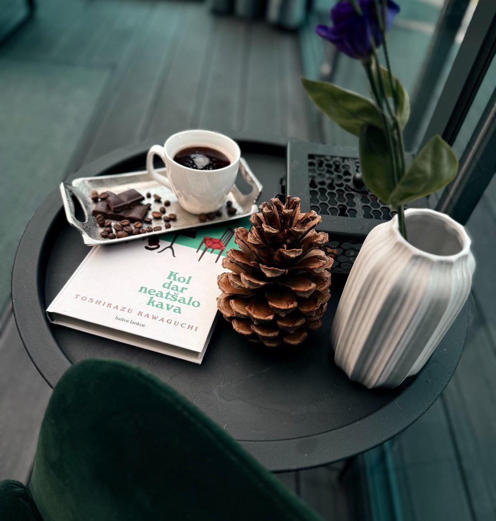 „Literatūriniame recepte“ – japonų rašytojo Toshikazu Kawaguchi knyga „Kol dar neatšalo kava“, siūlant žaismingą kelionių laiku iliuziją visiems smalsučiams, nujaučiantiems, kad linijinis laikas – tai tik dar viena suaugusiųjų pasaka.